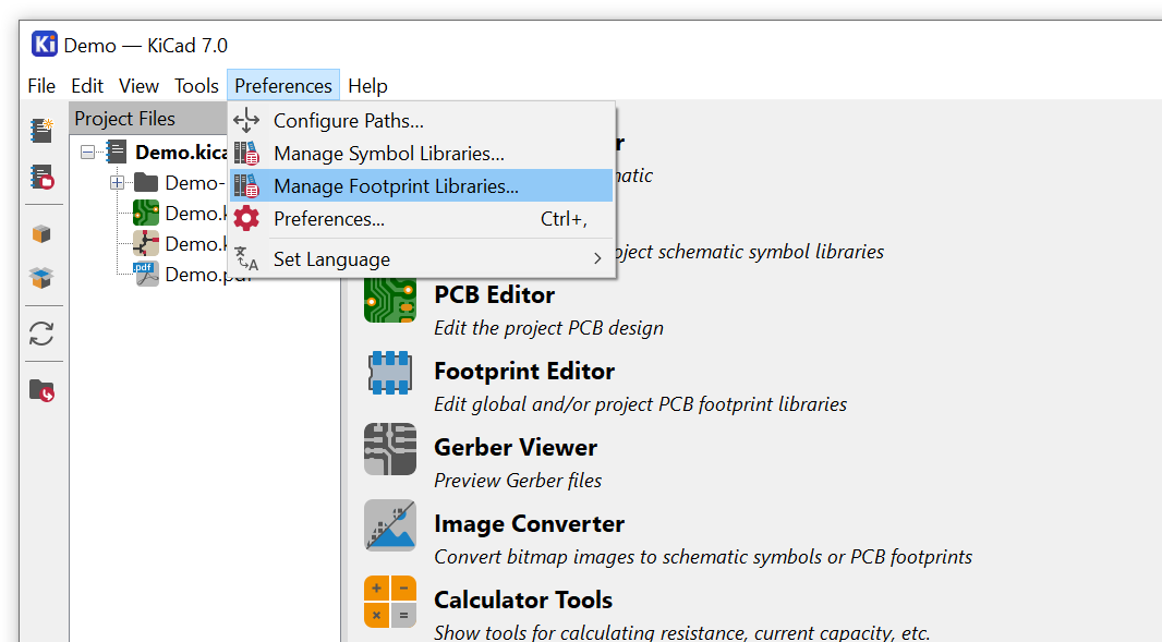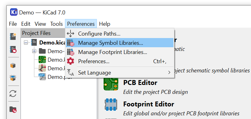 Next, go to Manage Symbol Libraries in the Preferences tab.